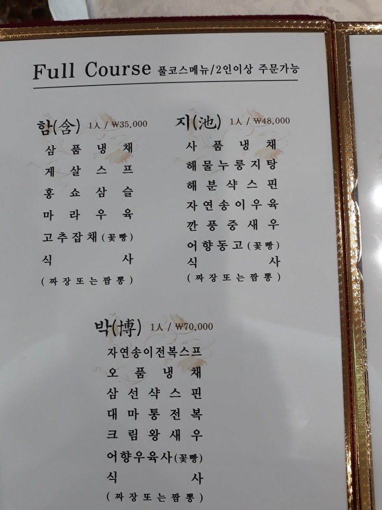 함지박은 일반 중국집보다는 조금 더 가격대가 있는 편이지만, 백화점이나 호텔 중식당에 비하면 저렴한 편입니다.